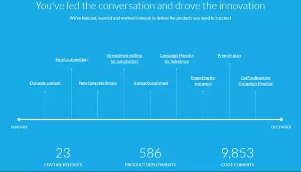 年年月月花相似,但靈感迸發(fā)的設(shè)計師們可不會拘泥于前人之作。相同的祝福,更高的愿景與期許,更精湛的設(shè)計巧思,每年的新年網(wǎng)站,無疑都是一場視覺與創(chuàng)意的盛宴。 飛向新出發(fā)點(diǎn)pernod-ricard 網(wǎng)站地址:http://new-year.pernod-ricard.com/ 新的一年永遠(yuǎn)是揚(yáng)帆起航的日子,這對于Pernod-Ricard這一世界級酒類出產(chǎn)商也一樣,正如設(shè)計師想表達(dá)的那樣——去飛吧,穿過宏偉的云層,來到但愿的神殿。 首頁載入完畢后,設(shè)計師就讓用戶穿越云層來到第二“天”。首頁氣魄恢宏,全動態(tài)頁面向用戶展示了一個洶涌澎湃的天空世界,也將企業(yè)的格式和愿望顯示的淋漓盡致。而導(dǎo)航頁頁面之上仿佛讓用戶早已登上了云層的頂端,已經(jīng)“一覽眾云小”;一串祝福案牘在畫面正中,先其他元素一步表達(dá)主題。導(dǎo)航欄做成了8個菱形塊,每一個幾何體背后都是一段小視頻,展示著企業(yè)的瞻望之意。 但設(shè)計師不會只知足云層殊效,于是他們在每一個導(dǎo)航下面,設(shè)計師將與流動、發(fā)生了什么事糅合在一起,而且都是以創(chuàng)意的“飛行模式”展開,充分描繪了趣味性,也讓消費(fèi)者感慨感染到這家公司的好與壞。 寫下你的新年祝福,我為你展現(xiàn) evs新年網(wǎng)站 網(wǎng)站地址:http://xmas.evs.com/summary 作為一個迎新站,EVS網(wǎng)站的設(shè)計夸大互動這一層面——網(wǎng)站以make anew-year-message為主題,通過自己公司員工進(jìn)行字母演繹,按照用戶所設(shè)定的序列排列出來。而這些都可以由用戶自行“DIY”。第一條“togetherwe’re making extrordinary”則是公司自行設(shè)計的迎新Slogan,當(dāng)用戶進(jìn)入網(wǎng)頁時就會自動播放,這不但引發(fā)了用戶創(chuàng)造屬于自己內(nèi)容的沖動,而且還傳遞了自身品牌。 作為一個廣告服務(wù)公司的網(wǎng)站,EVS新年網(wǎng)站天然在設(shè)計之上也可圈可點(diǎn),大面積純色排版、富有沖擊力的色調(diào)展示,展示出一個網(wǎng)站不凡的表現(xiàn)空間。而手寫體的文字、單屏頁面的板式也同時將網(wǎng)站變成了一個顯現(xiàn)企業(yè)風(fēng)格的地方。 再見,我們的2015 campaignmonitor新年網(wǎng)站 網(wǎng)站地址:https://www.campaignmonitor.com/2015/ 當(dāng)所有迎新網(wǎng)站大紅大綠之時,源自Saleforce的Campaignmonitor網(wǎng)站卻冷靜的打出自己的主題——“review”,獨(dú)具創(chuàng)意地用數(shù)據(jù)進(jìn)行展示,為其所服務(wù)過的企業(yè)做了一個宏觀服務(wù)講演。讓“圈里人”人深刻的意識到自己所在的2015年畢竟發(fā)生了什么,也同時鞏固了企業(yè)的“江湖地位”。 也許源自自身在數(shù)據(jù)運(yùn)營層面極深的造詣,campaignmonitor的設(shè)計師將網(wǎng)站設(shè)計出了一個數(shù)據(jù)講演的味道,長頁面設(shè)計讓每一頁用不同的顏色以及各種圖表展示出多種數(shù)據(jù)。而且所有頁面都有一個相互聯(lián)系關(guān)系的主題,從2015年的方方面面展示著企業(yè)所服務(wù)的客戶與整個營銷“大世界”絲絲縷縷的關(guān)系,讓每個客戶在讀到頁面之時都能得到深深的觸動。 整個網(wǎng)站已經(jīng)被設(shè)計師幾乎完全“數(shù)據(jù)化”,像是一張張商務(wù)幻燈片。但是網(wǎng)站設(shè)計卻涓滴沒有讓人有閱覽時的不適感,反而感到每一頁被銜接的恰到好處,而這恰是設(shè)計師對于網(wǎng)站元素靈活掌握的體現(xiàn)之處——哪幾頁用數(shù)字,哪幾頁用圖片,都是建立在設(shè)計師節(jié)奏把控之上。 海闊天空 stellar.aero2016年新航線預(yù)報 網(wǎng)站地址:https://www.stellar.aero/ 新的開端意味著無窮潛力與可能,也象征著未知的機(jī)遇與挑戰(zhàn),這句話對于Stellar航空公司來說不能更加貼切,向天空挑戰(zhàn),挖掘更多的可能無疑成為了他們新一年的目標(biāo)!而這種愿望也被設(shè)計語言重新描繪,展現(xiàn)在了Stellar官網(wǎng)上,高遠(yuǎn)遼闊的天空,旖旎壯麗的景觀,以及交相照映的“飛機(jī)與天空”的和諧友好,為來年譜寫了一章漂亮的序言。 網(wǎng)站首頁采用長頁面的設(shè)計形式,利用通屏大背景與文字排版組合,配合殊效,奏響了視覺上華麗的篇章。本站通過表達(dá)“飛機(jī)”與“天空”的關(guān)系,對實(shí)力的塑造交上了滿足的謎底。首頁對殊效的運(yùn)用,不管是視頻的運(yùn)用,仍是流線、幾何圖形的運(yùn)用,都配合行業(yè)特點(diǎn),極為流暢天然,一氣呵成。 而在內(nèi)頁的設(shè)計上,本站更多采用的是對稱設(shè)計的形式,遵循對稱的規(guī)則,對圖片和文字進(jìn)行排版,工整有序,簡潔天然。本站較為注重留白的運(yùn)用,不管是圖片比例,仍是頁面設(shè)計,都留給了用戶留下了充分想象的空間。 “無聊網(wǎng)站”第一彈——讓你的新年祝福升空吧 網(wǎng)站地址:http://www.activation-nodeplus.com/archive/cny2015/ activation-nodeplus.com是基于“新年主題”衍生出來的一個創(chuàng)意策劃——呈現(xiàn)載體為煙花,首頁引導(dǎo)頁過后,關(guān)于創(chuàng)意的使用說明簡潔明了的呈現(xiàn)在屏幕中間。輸入框,輸入任意字符,點(diǎn)擊繼承,玄色背景上,煙花粲然綻放,組成你輸入的字符,再度炸裂成碎片。為增加網(wǎng)站動感,除煙花動效外,玄色星空還伴跟著鼠標(biāo)隨意扭動,