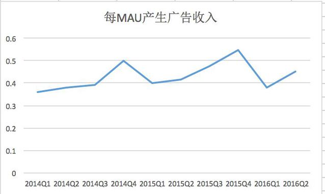 這張圖反映的是每MAU的廣告營收,今年一季度,微博達到0.38美元,二季度達到0.45美元。摩根斯坦利對亞洲同類公司這個指標給出的數(shù)據(jù)是:0.76美元(一季度)。Facebook在亞洲,這個數(shù)字是1.5美元(一季度)。 眾所周知的是,新浪擁有可能是中國最好的互聯(lián)網(wǎng)廣告銷售步隊。在諸家門戶中,它單個流量所能帶來的廣告銷售,即便面臨中國流量排名第二的騰訊QQ.com,也涓滴不落下風。 但微博的廣告銷售效率并不高。 2016年一季度,微博的CPM價格為15元人民幣,而微信朋友圈廣告的CPM價格達到60元人民幣,本日頭條為40-50元人民幣。 微博背后是100萬廣告主,長尾效應的確和朋友圈廣告、頭條廣告不同。微博CPM價格較低,對廣告主誠然是好動靜,但對微博,可謂效率還有待進步。 這些數(shù)字當然可以說明微博并沒有走到已無上升空間的境地,但同時,也可以說明,未來微博的主要重點是:打磨產(chǎn)品以進步DAU與MAU之比,晉升效率以進步CPM價格。 這是微博三季度、四季度財報發(fā)布后,應該關注的重點指標。 |