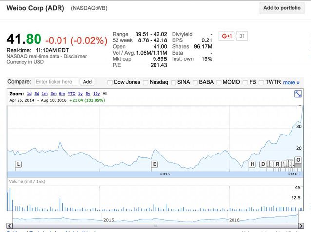 微博發(fā)布2016年二季度財報,業(yè)績相稱亮眼,利潤同比大漲5倍有余。 在中國互聯(lián)網(wǎng)這二十多年的發(fā)展歷史上,微博算是一個另類。它的獨特點在于,很少有像它這樣被輿論一致看好然后又一致看衰卻又在看衰中崛起的產(chǎn)品。 2011年,微博在輿論看多中走到頂峰,一度有所謂“微博改變中國”的說法。 2012年,微博開始走上下坡路,一個很有趣的現(xiàn)象就是,從“天天都要刷微博”到“現(xiàn)在還有什么人在用微博?” 2014年,微博上市,海內(nèi)輿論依然不是太過看好,一個很重要的原因在于,微信及其公家賬號平臺吸引了太多的目光。 2016年,微博強勢崛起,到8月份為止,股價已經(jīng)連拉六個月的陽線。當下股價創(chuàng)下歷史新高,突破40美元。 一 股價的上漲,背后是業(yè)績。打2014年上市之后,微博的業(yè)績的確讓人滿足。