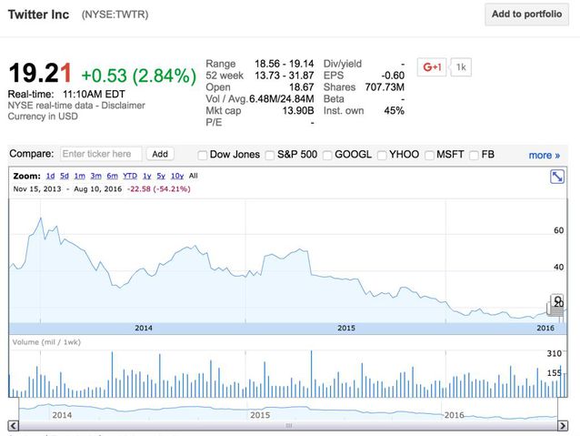 Twitter一直處于虧損狀態(tài),近日有媒體爆料說,它計劃將舊金山總部的1.7萬平方米空間對外轉租,算是開源節(jié)流。 與微博每個季度大致都有30%以上的MAU同比增幅比擬,Twitter的用戶活躍度在變差。到了2016年Q2,它的MAU同比增幅進入了負數(shù)區(qū)。 Twitter常常換CEO,以至于我的朋友開玩笑說,這家公司,已經(jīng)有了一股雅虎的氣質。 這是為什么? 四 Twitter長期利潤為負,我發(fā)現(xiàn)了一個小小的原因:它的開支,與微博比擬,有過高之感。 研發(fā)用度和銷售、治理及行政用度這兩項,在Twitter和微博的收益表里,都是重要的開支。