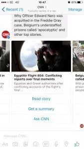 上月,F(xiàn)acebook開放了它們的動靜平臺,讓任何企業(yè)創(chuàng)建的聊天機器人與9億用戶直接交流。 CNN是四月首批推出機器人的內(nèi)容供給商,并且可以供全球觀眾使用。CNN目前擁有2150萬FB粉絲,CNN國際頻道也擁有1160萬,他們的聊天機器人可以知足所有這些粉絲,負責照看機器人的團隊隸屬于CNN環(huán)球數(shù)字部分。 CNN聊天機器人的目標,是通過吸引全球各地新的觀眾、提供應(yīng)他們更加個性化的新聞體驗,來擴大自身的國際影響力。 “動靜類應(yīng)用對新聞來說是個成熟的平臺,由于這里可以一對一的交流,但是也可以作為媒體,大規(guī)模的廣播動靜。這就是其令人高興的原因所在。四大通信應(yīng)用已經(jīng)超越了四大社交平臺。”Wellen如是說。 CNN聊天機器人推出已近一月,他們都有哪些重要的發(fā)現(xiàn)呢? 哪里流血,哪里就能引發(fā)關(guān)注