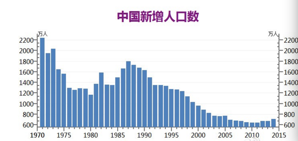 非常顯著,由正常的金字塔結(jié)構(gòu)變?yōu)殚L方形行結(jié)構(gòu),可見養(yǎng)老負擔過重。 而阿里多數(shù)是以小件物品、日常消費為主,消費者以當下15——35歲區(qū)間,也就是80后人口居多,大家也認識了網(wǎng)購。 而我國社會,正處于“供應側(cè)改革階段”,由出產(chǎn)更多產(chǎn)品,知足人民日益上漲的物質(zhì)需求;轉(zhuǎn)變?yōu)椋撼霎a(chǎn)高質(zhì)量產(chǎn)品,知足人民群眾的精神需求。 買個產(chǎn)品,僅僅能用,這是不行的;85后年青一代,需要它酷;70后——85后,需要它健康。 這個需求是日益顯著的。 再看看看新增人口情況。