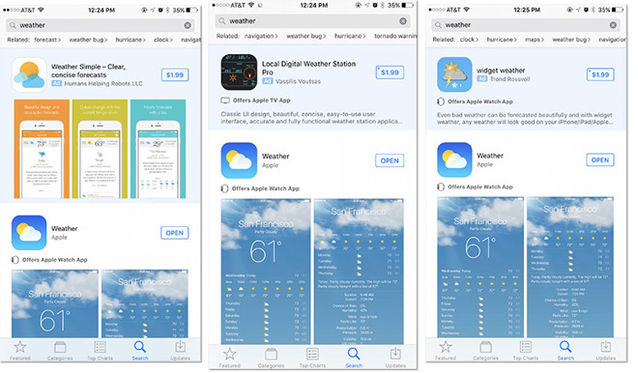 競爭對手和小型應(yīng)用可以購買樞紐詞 大家擔(dān)心導(dǎo)致不良后果 蘋果App Store內(nèi)的搜索廣告,使用藍(lán)色背景,以和其他正常搜索結(jié)果作區(qū)別,并且也標(biāo)注AD,認(rèn)識Google廣告的人會(huì)清楚知道這是廣告。不外仍是有人擔(dān)心,競價(jià)廣告的開放會(huì)導(dǎo)致App Store混亂現(xiàn)象的增多。 1.搜索樞紐詞被競爭對手購買。目前已經(jīng)泛起搜索一些樞紐詞,泛起競爭對手或者其他應(yīng)用的現(xiàn)象,例如搜索Yelp泛起Eats24,搜索weather泛起其他的小應(yīng)用