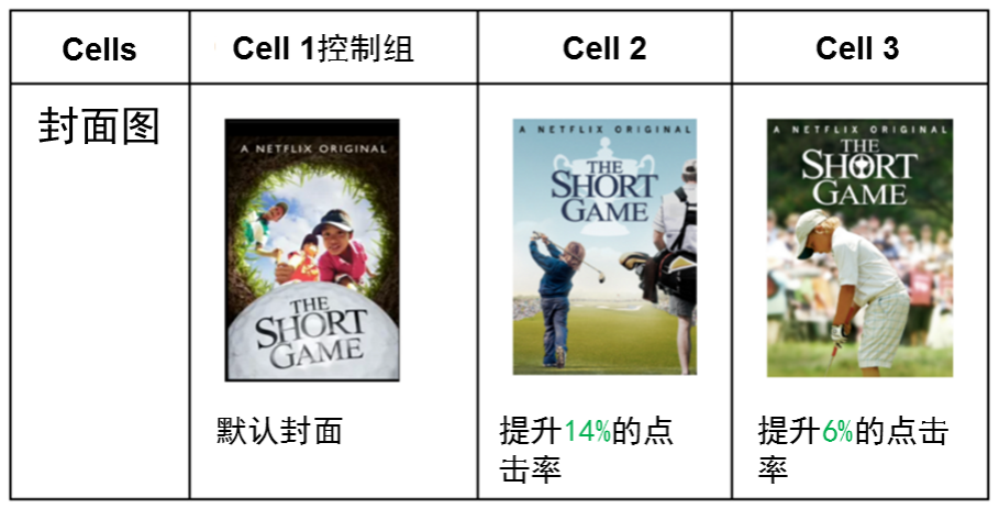 Netflix 隨后建立了一個封面圖自動分類系統(tǒng),將共用一張背景圖但具有不同長寬比、裁剪位置、小規(guī)模修整以及標(biāo)題經(jīng)由局部處理的封面圖分為一組作為比較,并在網(wǎng)站上的不斷重復(fù)試驗,以追蹤具有相似特征的封面圖吸引點擊的效果。 下面是一些案例: 兩張標(biāo)記封面圖效果明顯優(yōu)于其他實驗對象