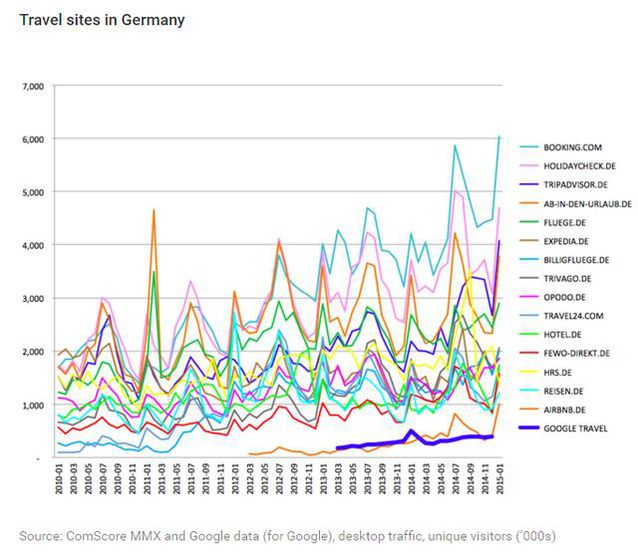 歐盟指責(zé)谷歌人工干涉干與了搜索結(jié)果,不外這里要提醒大家的是,DT君經(jīng)由調(diào)查發(fā)現(xiàn),谷歌受到的指控并不是類似百度這樣的販賣廣告位等,而是將自己的一些產(chǎn)品排在了更優(yōu)先的位置。這些被指控的產(chǎn)品,也都不是最核心的產(chǎn)品,好比Google Travel、Google Shopping等。 谷歌在遭到指控后作出回應(yīng),不無委屈地曬出這些產(chǎn)品在一些歐盟國家可憐的市場(chǎng)份額。谷歌表示,旅行搜索是一個(gè)競(jìng)爭(zhēng)激烈的垂直市場(chǎng),而自己的據(jù)有率實(shí)在少得可憐。