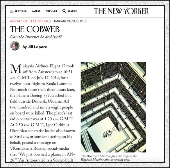 而互聯(lián)網(wǎng)檔案通常不僅僅是你我的,互聯(lián)網(wǎng)是人類的集體記憶,他們不應(yīng)該被遺忘。 一位棲身在法國的美國先鋒藝術(shù)家的色情作品是不是被消失,坦率地說,根本不必大驚小怪;在《花花公子》雜志自覺自愿地讓其封面少女穿上衣服而不是脫光衣服以吸引讀者的時(shí)代,拿風(fēng)化說事太無聊了。杰羅姆放不下這個(gè)話題,一定要說上幾句的原因是,這位藝術(shù)家面臨的題目,既不是版權(quán),也不是風(fēng)化,而是一個(gè)人的故事與這個(gè)故事存在的權(quán)力。每一個(gè)人的故事與作品,構(gòu)成了這個(gè)世界與這個(gè)時(shí)代,只有通過記憶每一個(gè)人的故事與每一個(gè)人的作品,歷史才有可能呈現(xiàn)自己完整的結(jié)構(gòu)與色彩。谷歌或者其他隨便任何人,在沒有拿得出手的理由的情況下,怎么可以抹去這個(gè)人以及他的故事? 當(dāng)然,這樣戲劇性的情節(jié),仍舊不是題目的樞紐。更讓人驚奇的是,關(guān)于互聯(lián)網(wǎng)的集體記憶,也在淡出,谷歌在有意無意地拋卻“記憶”,記憶是有本錢的,那些并不能產(chǎn)出利潤的過去,值得以贏利為目的的企業(yè)去動(dòng)用龐大的資源,存檔嗎? 當(dāng)然,網(wǎng)絡(luò)記憶不是谷歌的題目,這是網(wǎng)絡(luò)時(shí)代的題目!都~約客》雜志去年有一篇十分出色的文章《蛛網(wǎng):互聯(lián)網(wǎng)可以被存檔嗎?》