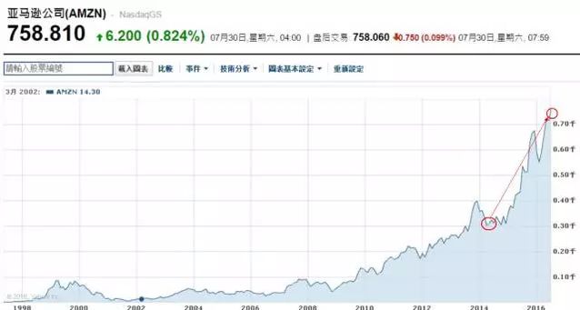 2014 年,貝佐斯被《哈佛貿(mào)易評論》選為 100 位卓越 CEO 第一名,當(dāng)選理由即股東回報率驚人:在調(diào)整國別后,1996 年到 2014 年的股東回報率,依然達(dá)到了 152 倍。 而且,這還不是終點。 從 2015 年至今,短短 19 個月內(nèi),亞馬遜的市值不僅超過了沃爾瑪,還超過了伯克希爾。本周末亞馬遜市值達(dá)到 3657 億美元,比 2015 年第一個交易日的 1438 億美元高出了 2200 億美元。假如你對這個數(shù)字沒有概念,可以把它想象成是四個“百度”。