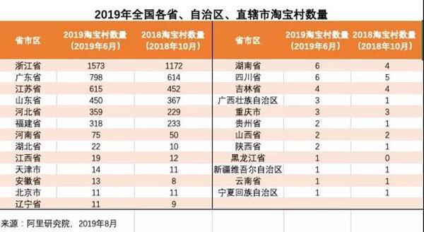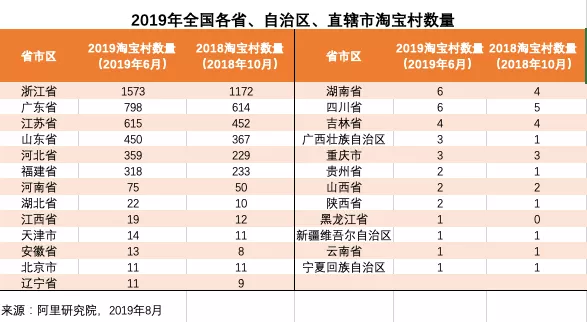 日前,阿里研究院發(fā)布2019年淘寶村、淘寶鎮(zhèn)名單。到2019年6月,全國共有4310個淘寶村、1118個淘寶鎮(zhèn)。