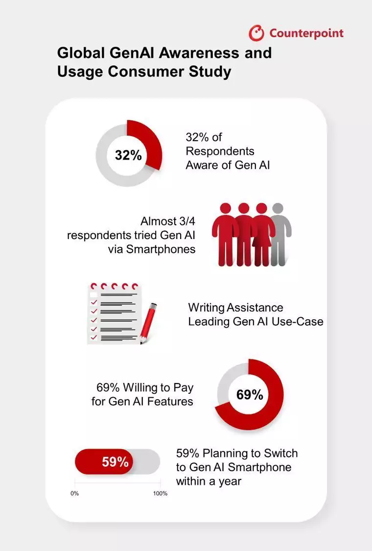 根據(jù) Counterpoint Research 的報(bào)告,生成式 AI 手機(jī)普及浪潮將至,以下是具體介紹: 消費(fèi)者認(rèn)知與意愿