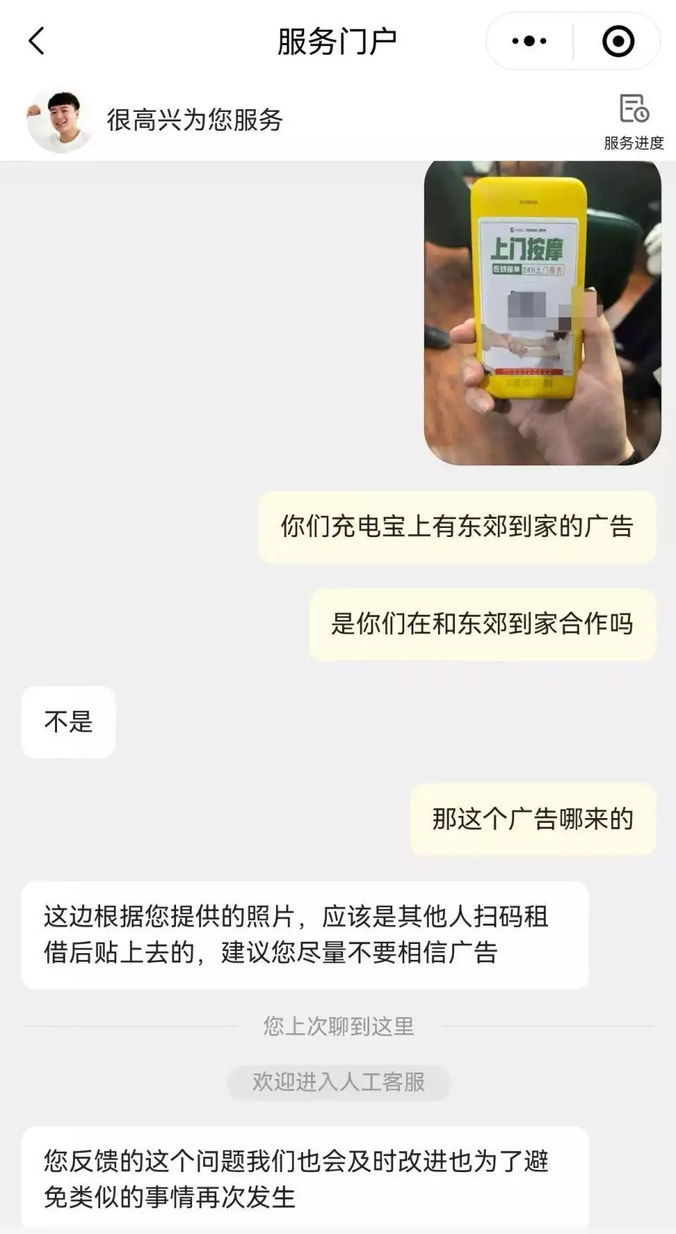 2024 年 12 月 22 日,武漢市民李曼在楚河漢街某餐飲店租用美團(tuán)共享充電寶時(shí),發(fā)現(xiàn)充電寶上粘貼有 “東郊到家上門(mén)按摩” 的廣告. 以下是關(guān)于該事件的詳細(xì)介紹: