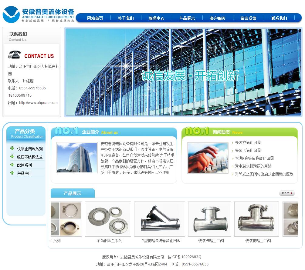 安徽普奧流體設(shè)備有限公司是一家專業(yè)研發(fā)生產(chǎn)各類不銹鋼新 型閥門、流體設(shè)備,電氣設(shè)備和環(huán)保設(shè)備,公司自創(chuàng)建以來始終致 力于技術(shù)創(chuàng)新,產(chǎn)品創(chuàng)新的經(jīng)營方針,結(jié)合市場需求已形成以不銹 鋼閥□為核心的各類相關(guān)產(chǎn)品,廣泛用于市政、環(huán)保、建筑等領(lǐng)域。