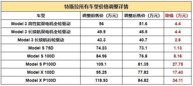 特斯拉全系車(chē)型再次呈現(xiàn)大幅調(diào)價(jià),其最高降幅車(chē)型為Model X P100D車(chē)型,降幅達(dá)到了34.11萬(wàn)。其中Model 3降價(jià)區(qū)間為2.6-4.4萬(wàn)、Model S降價(jià)為1.13-27.75萬(wàn)、Model X降價(jià)區(qū)間為17.45-34.11萬(wàn)。