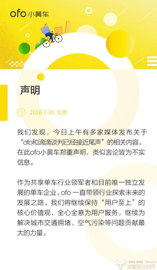 近來,有媒體報(bào)導(dǎo)稱,ofo和滴滴的商洽或現(xiàn)已挨近尾聲,收買價(jià)格再三下降。對(duì)此,ofo稱音訊不實(shí),滴滴則表示內(nèi)部沒有任何音訊。