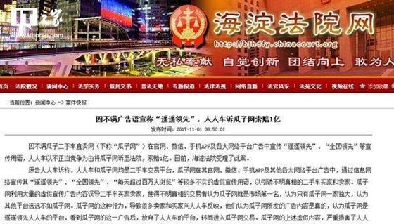 二手車商場最近工作不少。除了幾家都別離融資人人車趁著雙十一之前把瓜子二手車告上了法庭,索賠1個億。申述理由是不正當競賽。