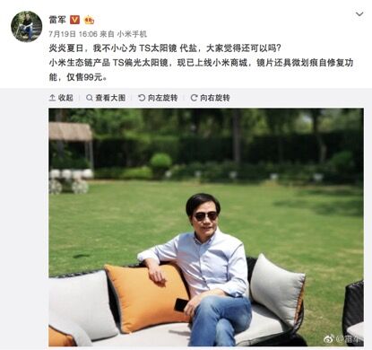 8月15日音訊,上個(gè)月,小米商城上架了一款定制版的米家太陽鏡,隨后小米雷軍試戴了該款產(chǎn)品,并頂著炎炎酷日在戶外秀了一把買家秀,其