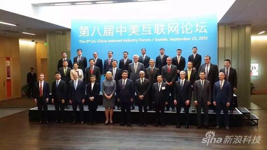 中國國家主席習(xí)近平和參加中美互聯(lián)網(wǎng)論壇的中美聞名企業(yè)的總裁合影 (西雅圖中文電臺臺長蘇小元 拍攝) 中國國家互聯(lián)網(wǎng)信息辦公室主