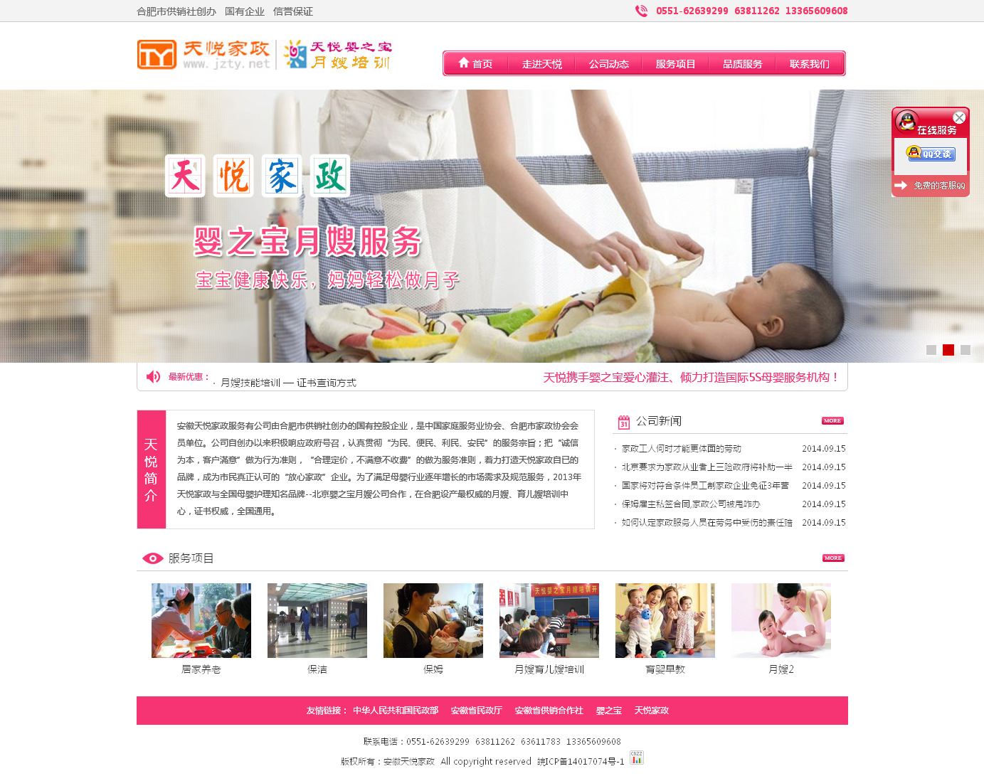 安徽天悅家政服務(wù)有公司由合肥市供銷社創(chuàng)辦的國有控股企業(yè),是中國家庭服務(wù)業(yè)協(xié)會(huì)、合肥市家政協(xié)會(huì)會(huì)員單位。公司自創(chuàng)辦以來積極響應(yīng)政府號(hào)召,認(rèn)真貫