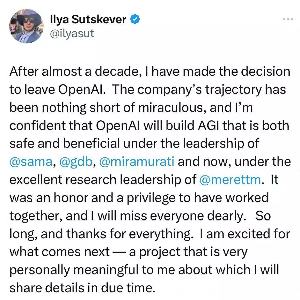 OpenAI 聯(lián)合創(chuàng)始人兼首席科學(xué)家 Ilya Sutskever 于當(dāng)?shù)貢r(shí)間5月14日晚在社交平臺(tái) X 上發(fā)文稱,他將在近十年后離開 OpenAI。他表示,OpenAI 的發(fā)展軌跡堪稱奇跡,