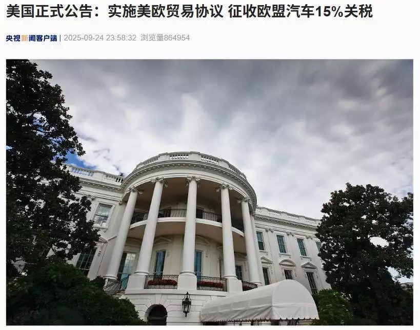 美國(guó)商務(wù)部與貿(mào)易代表辦公室于當(dāng)?shù)貢r(shí)間9月24日發(fā)布聯(lián)合公告,正式確認(rèn)對(duì)歐盟進(jìn)口汽車及汽車產(chǎn)品征收15%的關(guān)稅,此決定將追溯至2025年8月1日起生效。