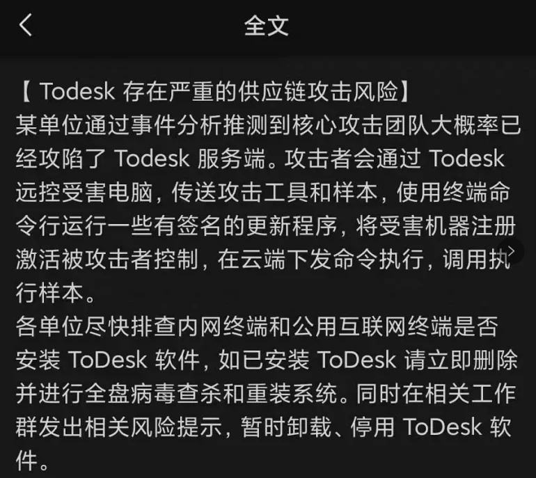 就在前幾天,大名鼎鼎的長途操控軟件To Desk被爆存在安全縫隙,更有知情人士To Desk總服務器已被拿下,進犯者會經(jīng)過To Desk遠控受害者電腦傳送進犯樣本,
