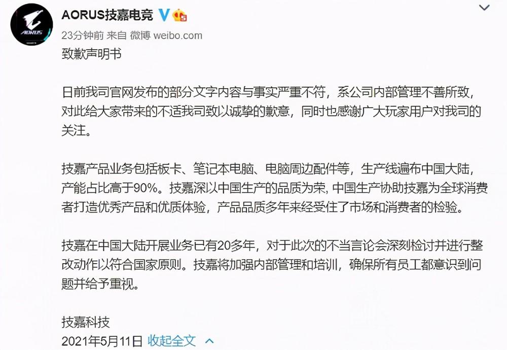 技嘉的過錯言辭 我國一直保持商場敞開,有許多外企都會選擇在我國商場上經(jīng)商。不論是制作業(yè),