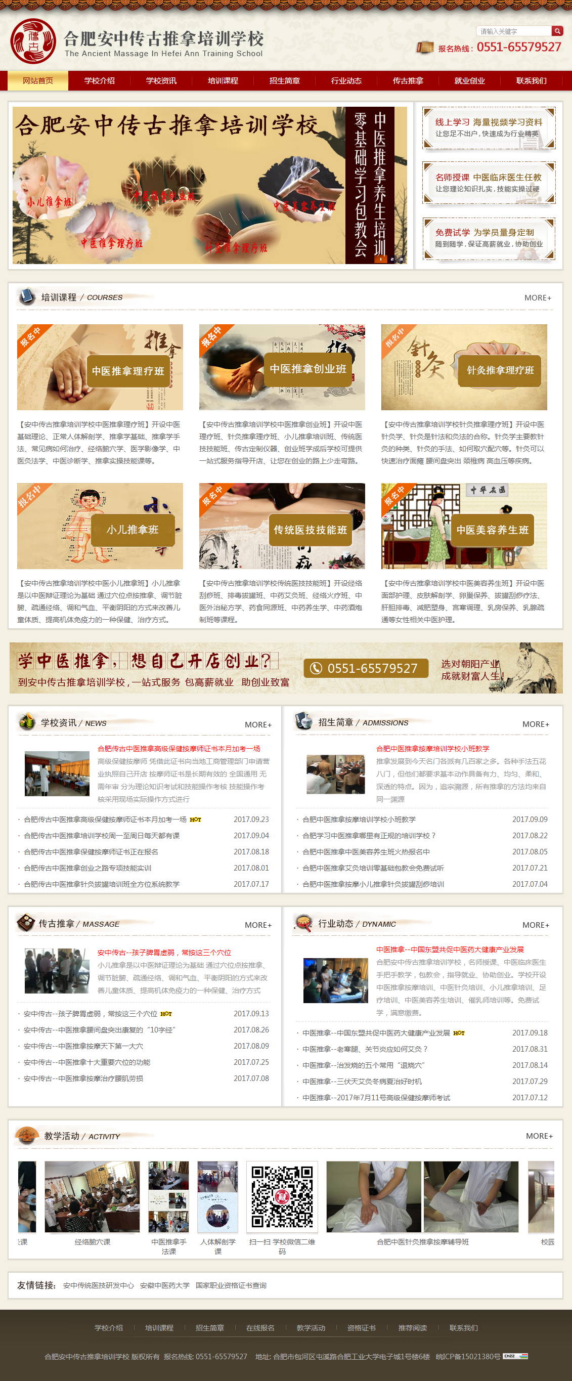 合肥安中傳古推拿培訓學校以中醫(yī)推拿按摩培訓為特色,專注于傳統(tǒng)醫(yī)技的研發(fā)推廣,傳統(tǒng)醫(yī)學技術(shù)(中醫(yī)推拿、艾灸、刮痧、拔罐、火療、刺血、針灸、穴位埋線、養(yǎng)生藥酒、藥食同源等)的推廣培訓,成人繼續(xù)教育考培輔導,健康產(chǎn)品及服務(wù)的研究開發(fā)等。學校自成立以來,培養(yǎng)了一大批具有現(xiàn)代化養(yǎng)生知識和理念的專業(yè)人才,提高了保健養(yǎng)生人員的學歷層次,自主研發(fā)的“保健養(yǎng)生酒”系列、“藥食同源”保健食品系列深受廣大學員和市場的喜愛。